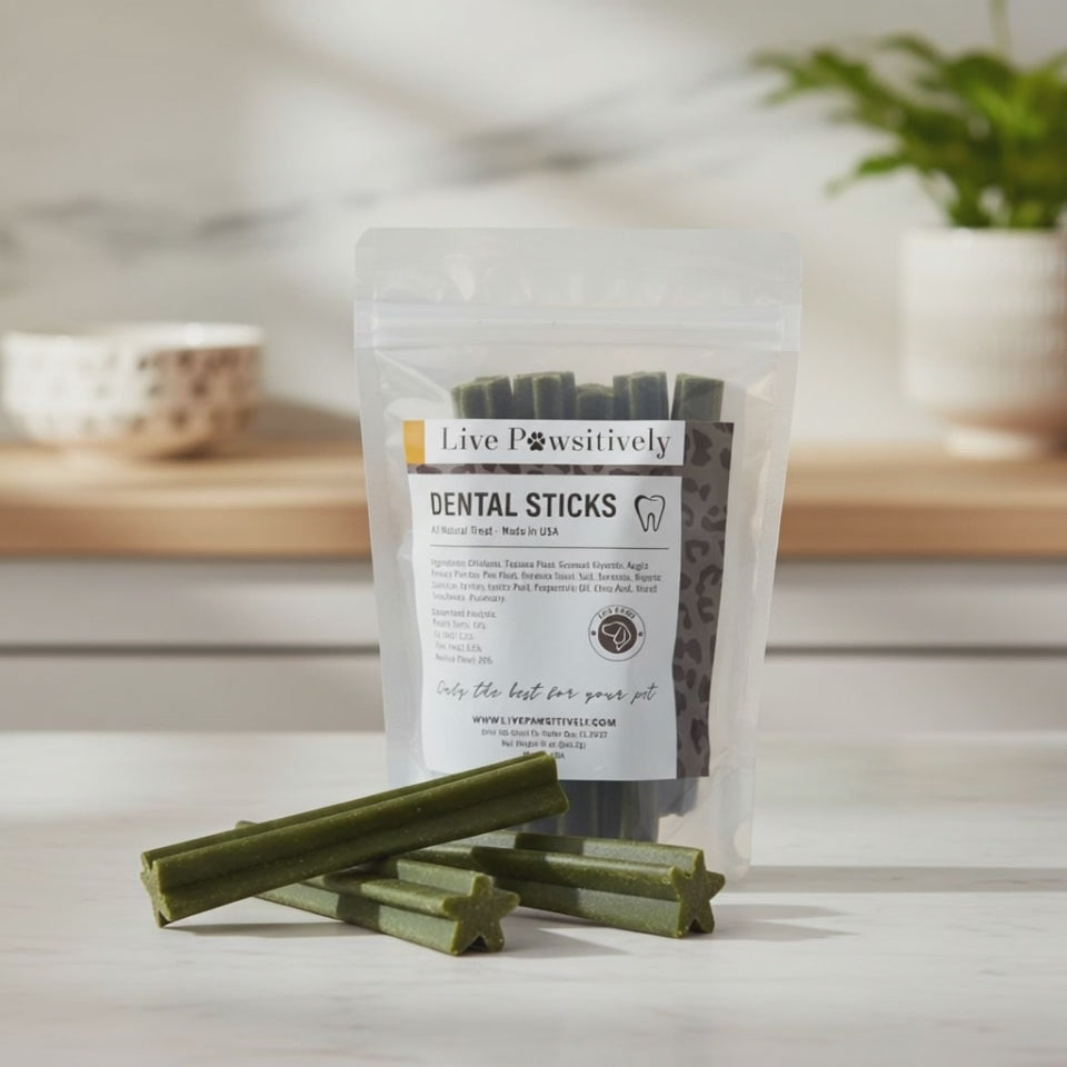 Our Dental Chews are a grain free healthy chew for your dog of all ages (from puppy to adult). The star shape is designed to help keep your dogs teeth clean even in the small spaces between the teeth. When given dental chews on a regular basis it will help prevent tartar buildup.